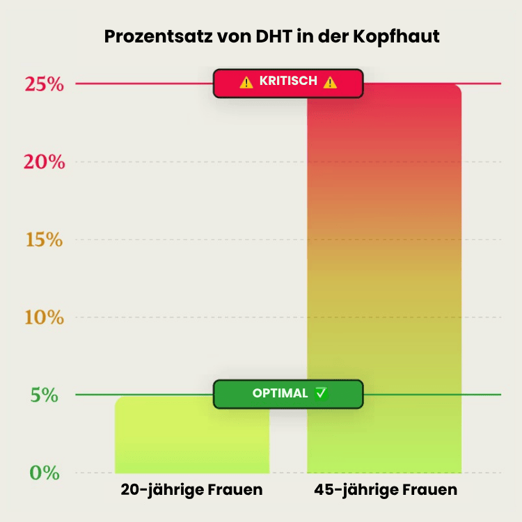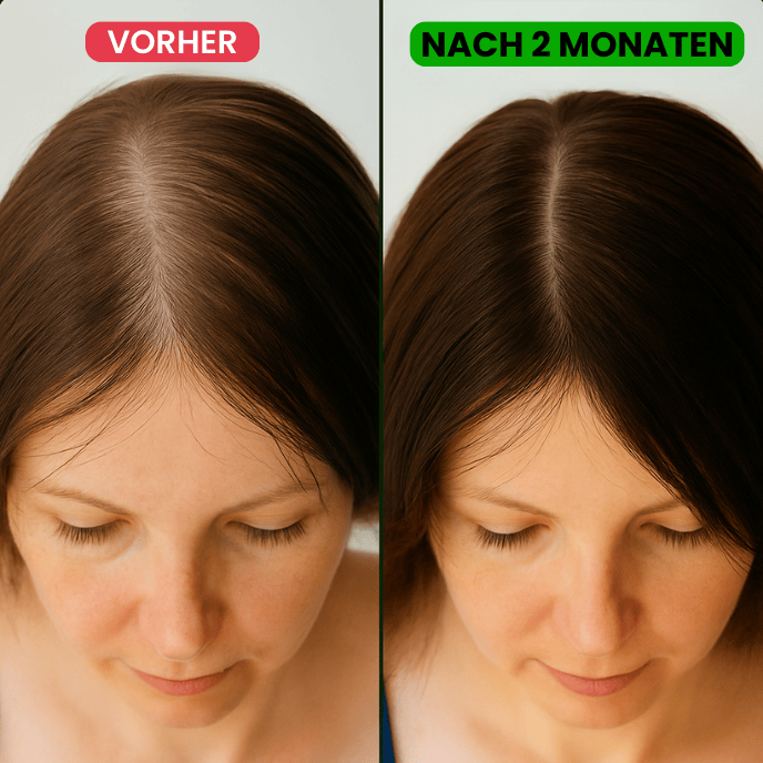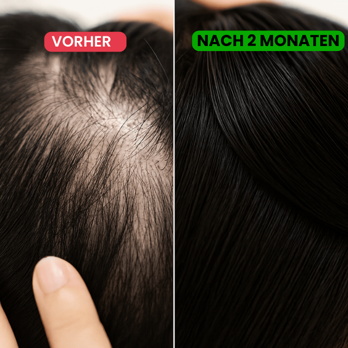Die Aktivität von DHT an deinen Haarfollikeln ist ein wesentlicher Grund für Haarausfall. Es lässt die Follikel schrumpfen, kappt ihre Blutversorgung und macht es ihnen unmöglich, die Nährstoffe aufzunehmen, die sie dringend brauchen. Dein früher gesundes Haar wächst jedes Mal feiner und kürzer nach – bis einige Strähnen schließlich ganz aufgeben.